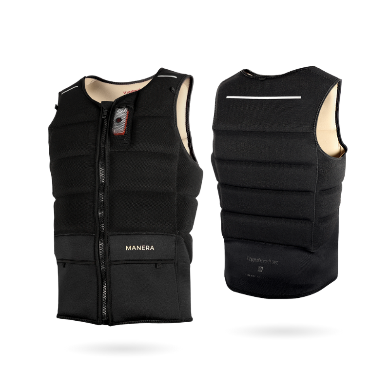 Naujoji MANERA VEGABOND - Puiki apsauga + komplektuojamas švilpukas ir SOS žibintas. Papildomos apsaugos tavo sesijoms toli nuo kranto. New disciplines often imply new risks. Nowadays, wing foilers and downwinders are going further offshore to tackle the best bumps. Be prepared and “Ready to Escape.” The VAGABOND Impact Vest has been developed as a minimalistic, highly comfortable vest featuring the necessary tools to go offshore.