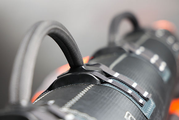 A F-ONE innovation, these are soft handles that are connected to the wing’s webbing by a hard base. Thanks to this hard base, these handles do not deform, offer an ergonomic shape, and are easier to grasp during maneuvers and transitions. These hybrid handles hence provide a more direct feel in your hands for more performance and control, while still fully benefiting from the comfort and grip of the soft handles.